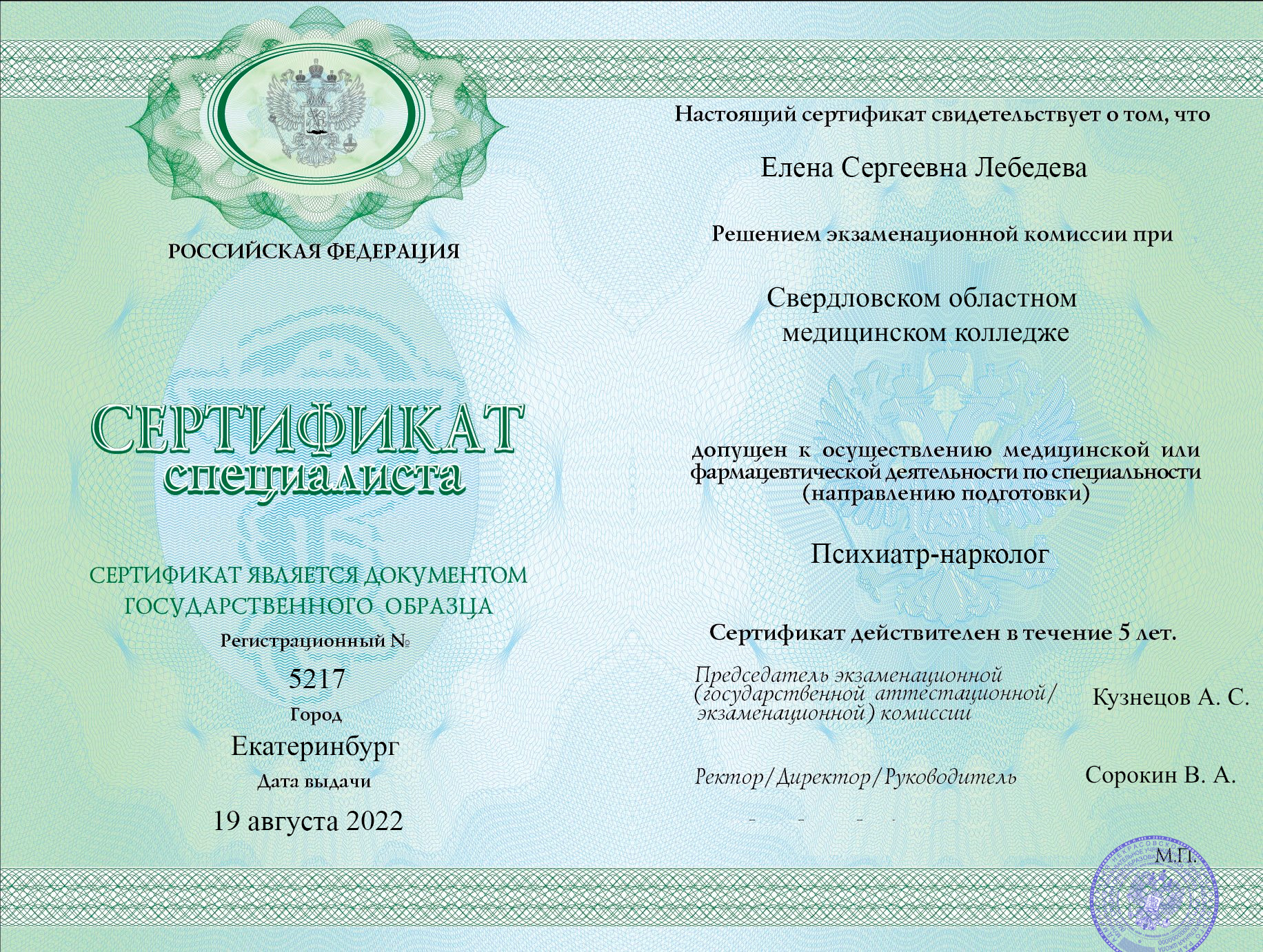 Елена Сергеевна Лебедева врач нарколог клиники доктора Стукаловой в Черёмушках